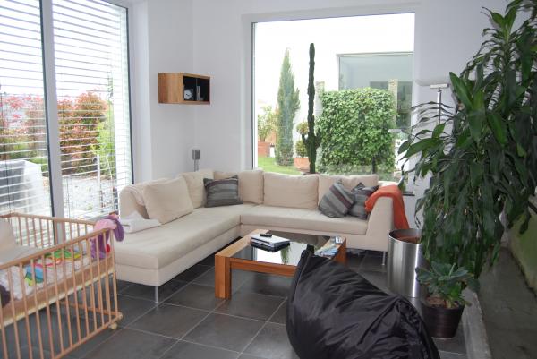 -Zwischen Ess-und Wohnbereich befindet sich eine Wasserwand, die einen nach dem stressigen Arbeitstag zum Entspannen einlädt.